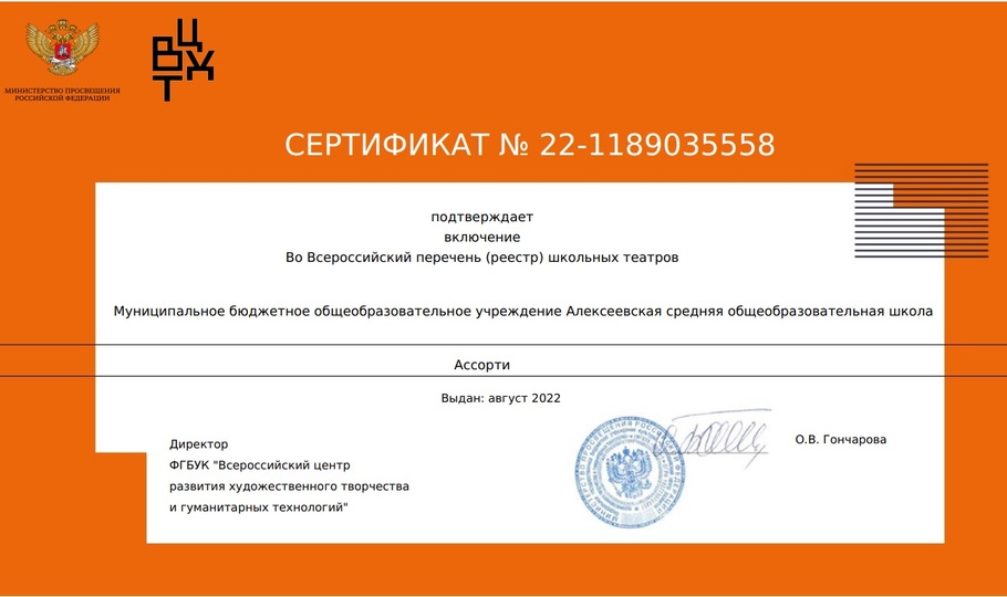 С 2022 года в рамках федерального проекта «Успех каждого ребенка» национального проекта «Образование» создаются школьные театрыдля раскрытия творческого потенциала школьников.Театральное искусство в школе помогает разрешить многообразие психолого-педагогических, социальных и культурных проблем. Это освоение языка и культурных традиций других народов, развитие познавательных интересов, развитие навыков самообучения, самодисциплины, развитие навыков межличностного общения.