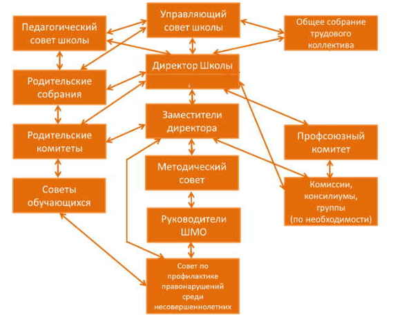 В Школе формируются коллегиальные органы управления, к которым относятся управляющий совет, общее собрание работников Школы, педагогический совет, родительские комитеты.